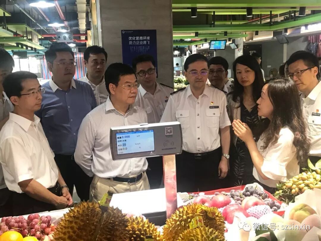 6月27日下午,深圳市副市长黄敏莅临福田区华富北街市视察,督导落实食品安全管理工作。深圳市市场监督管理局局长、党组书记邝兵、福田区领导、市场监管局领导陪同视察,并作了详细讲解。