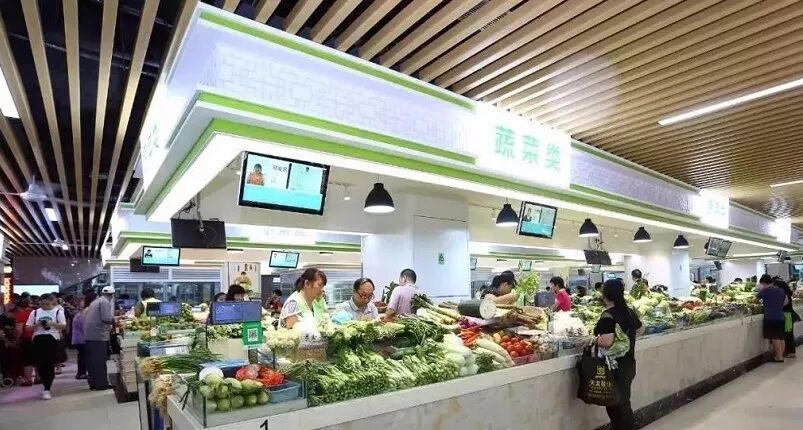 我们可以想象,不久后走进农贸市场就像走进大型购物商场一样,所有的蔬果和生鲜都是整齐划一;所有的商品信息,只需要通过触摸屏或者移动端就可以一览无遗,墙上的LED显示屏,滚动公示市场经营的蔬菜价格、水果价格、食品检测情况等信息;出了问题,店铺老板的商户信息也有据可循,所有菜品均有质量检测,安全追溯。