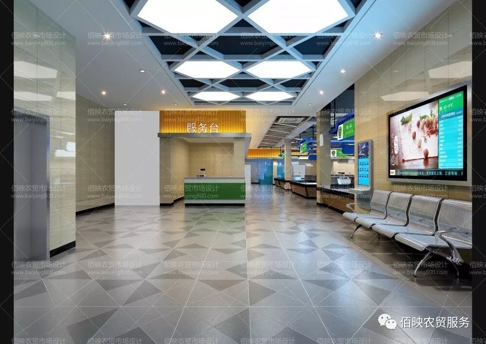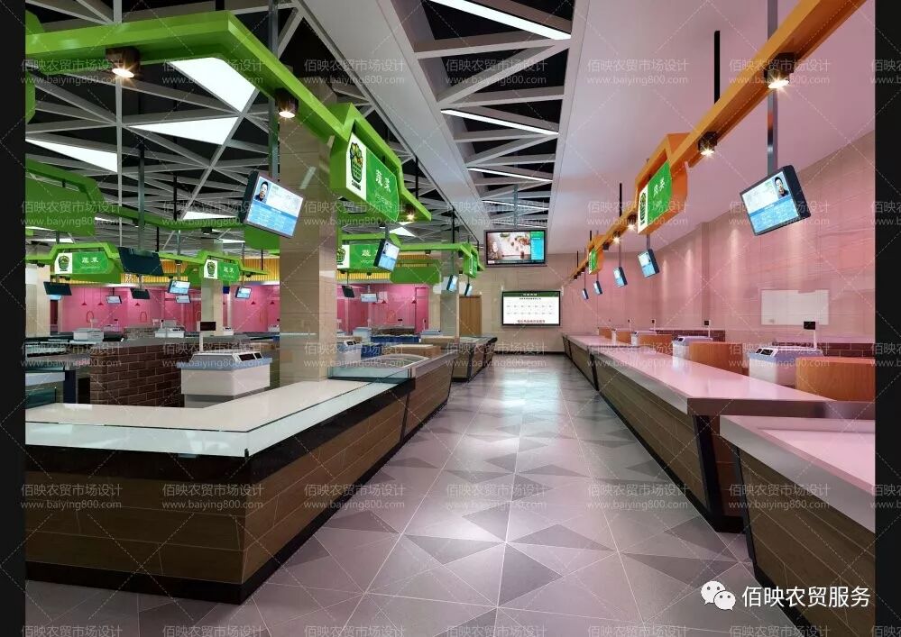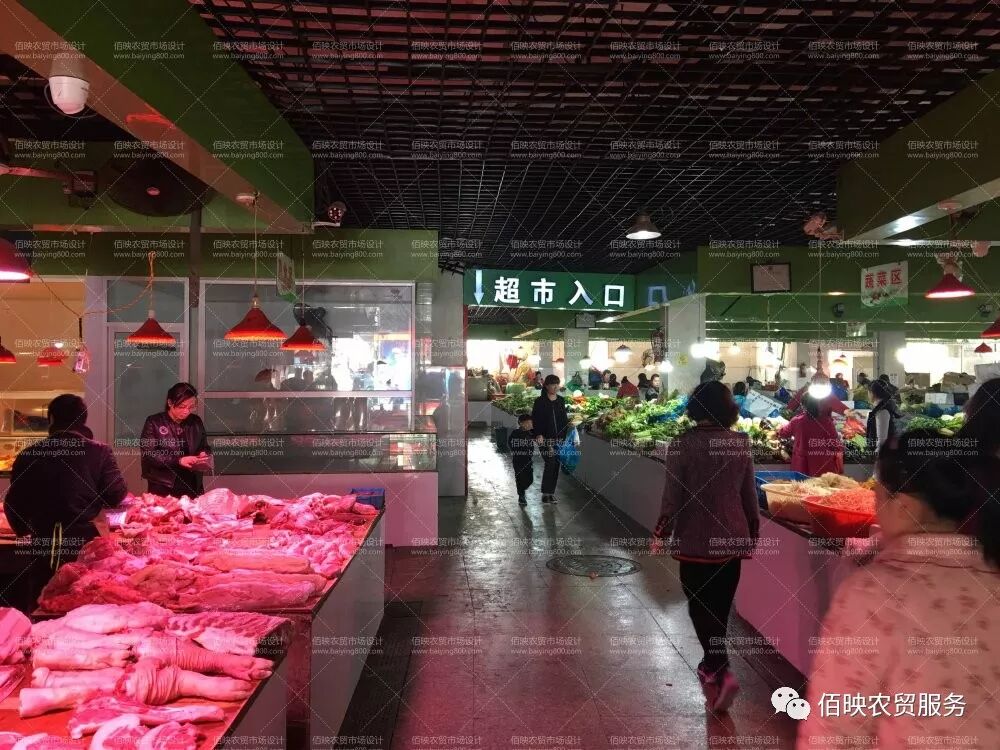 (上图为温州鹿城区改造前的仰义街道农贸市场) 改造设计实施前,通过对温州农贸市场现状的考察发现,几乎全温州市的农贸市场中,所有摊位不论何种业态,其做法都是一模一样的,这就让我们的农贸市场提升改造设计工作显得难以体现针对性。要了解深层原因,就离不开对市场的走访和调研,在经过了多日的走访后,我们与温州市数十个农贸市场的管理方进行了沟通,发现所有业态摊位做法完全一致是有原因的:温州农贸市场的行情是每年进行“摸文”(即抽签认筹法),商户通过这种形式确定下一年在哪个摊位经营,整个市场的所有摊位都会每年发生业态变动,为了便于所有业态的经营,所以摊位柜台采用了统一的做法。 2017-2019年间,佰映团队着手对温州市近三十个农贸市场进行了有针对性的提升改造设计,其中包括三星级以上市场十余个。在这期间,为了真正体现农贸市场提升改造后的焕然一新的效果,我们主张将摊位柜台根据业态进行区分设计,并且对“摸文”方式提出了进一步的建议,大的业态区域固定不变,在该区域范围内的所有商户进行“摸文”定位置的轮换,不但延续了每年换位置的温州农贸市场经营习俗,而且让摊位柜台的做法更贴切使用习惯,也让划行规市概念更加规范。 (上图为温州鹿城区某农贸市场提升改造效果图) 蔬菜柜台鼓励采用阶梯摆放式设计。柜台高度宜为0.7米-0.8米,以0.1米-0.15米呈阶梯上升,一般设计为三层;每组柜台宜设商位数4个左右,每组柜台设1个-2个宽度为0.7米出入口。 水果商位鼓励采用开架摆放式设计。柜台采用斜坡递增分隔式,柜台架子可采用固定式或活动式、组合装配式相结合。 冰鲜水产品交易区柜台宜设置在靠墙侧,布局相对集中。内墙面铺设瓷砖到顶,地面铺设防滑地砖,应有一定的排水坡度。台面采用不锈钢结构或砖砼结构,台面上加装多孔不锈钢板,外贴瓷砖,内外侧地面均设排水明槽。 肉类柜台宜用厚质木板铺面,便于切割。用于坎、剁的砧板或直接设计在厚质木板的台面上(即嵌在台面内),或在柜台内统一留有摆放砧板的位置,砧板架应统一固定设计。 活禽交易区必须设计为集销售、宰杀功能为一体的全封闭透明式的营业房。内设多个商位,并配有通风和排水设施、清洗水池、操作台以及垃圾收集设施,以保持室内空气新鲜,无异味、臭味外传。 豆制品柜台上采用玻璃半封闭式与外界隔离的设施,不得露空售卖。内配豆制品专用的放置或展示设施,留有冷柜电源插座。 熟食品营业房,采用统一透明的玻璃封面设计,并设柜式售卖窗。室内必须设洗手、消毒、更衣等设备,悬挂造形美观、照明度好的灯光设施。 农贸市场的不同业态都应该有独立的特点,在满足用户基本需求的同时具备自身独立的特色更加能吸引顾客,增加成交率。以上是佰映对几种主流的业态柜台的分类设计心得,供各位参考。