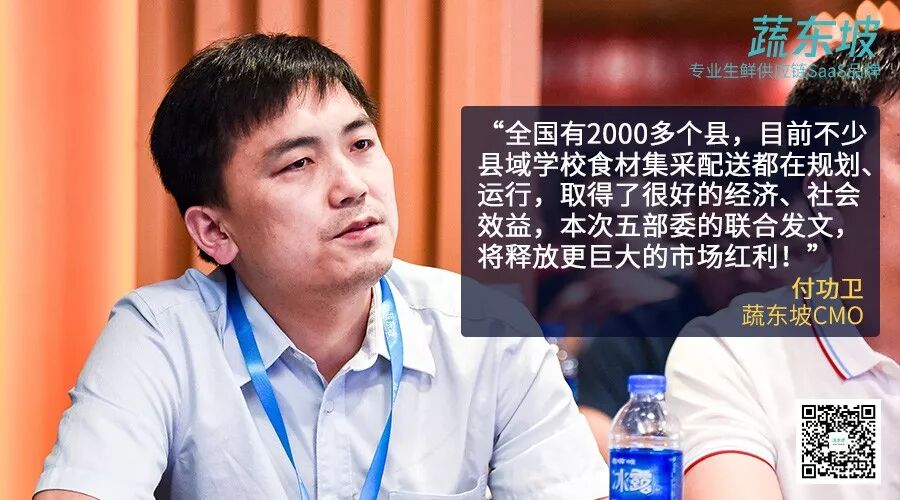 蔬东坡联合创始人付功卫表示:全国有2000多个县,目前不少县域学校食材集采配送都在规划、运行,取得了很好的经济、社会效益,本次五部委的联合发文,将释放更巨大的市场红利!