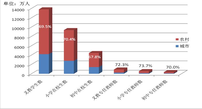 2013年有效数据统计,我国农村义务教育阶段学生占全国义务教育阶段学生比例约为69.5%。考虑到近几年中国城市化的飞速发展,我们暂且预设这一数值为65%。