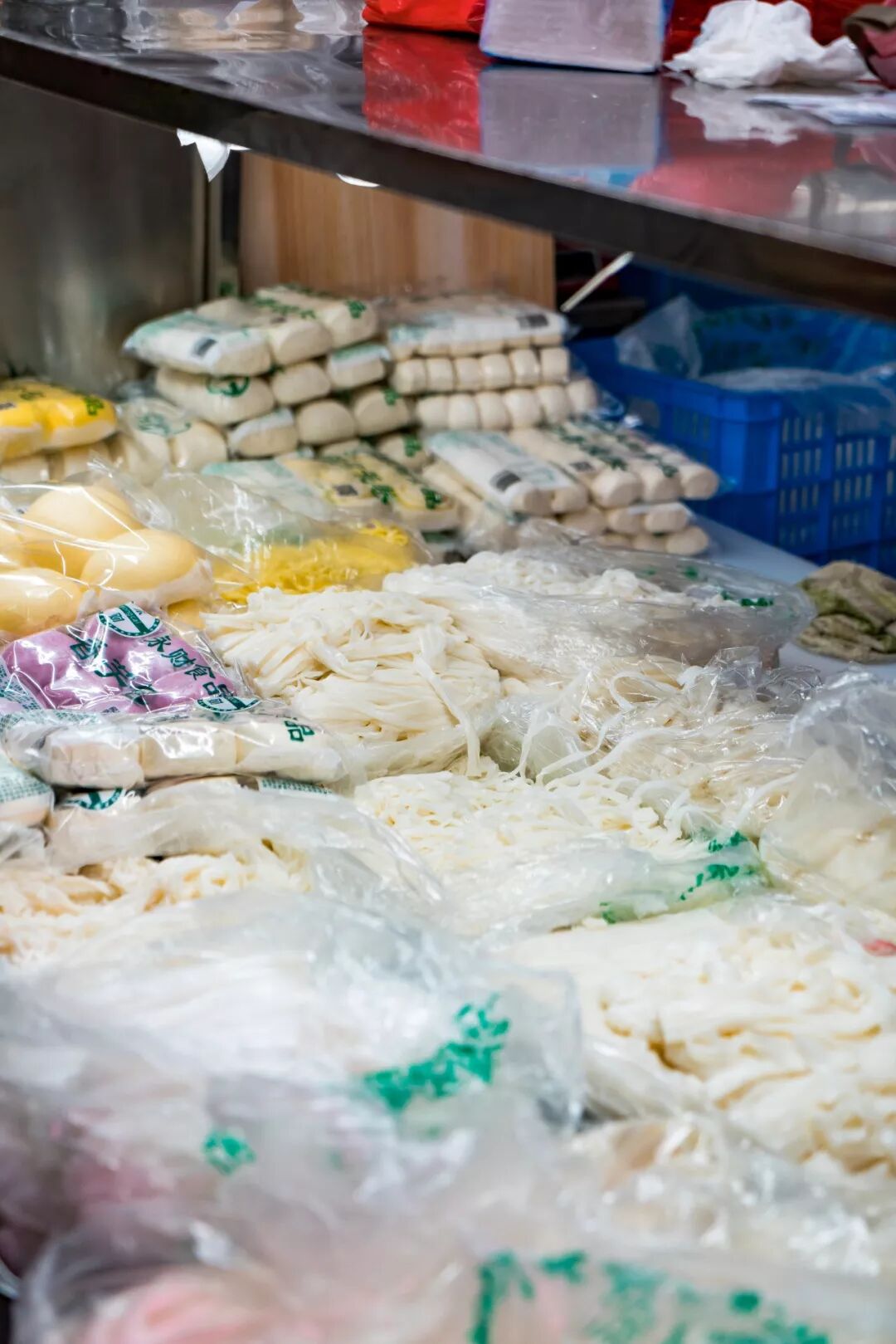 想买现做云吞、饺子,这里都有,机器就摆在摊位里。想吃粿条的,这里也有满满的几个摊位让你选。