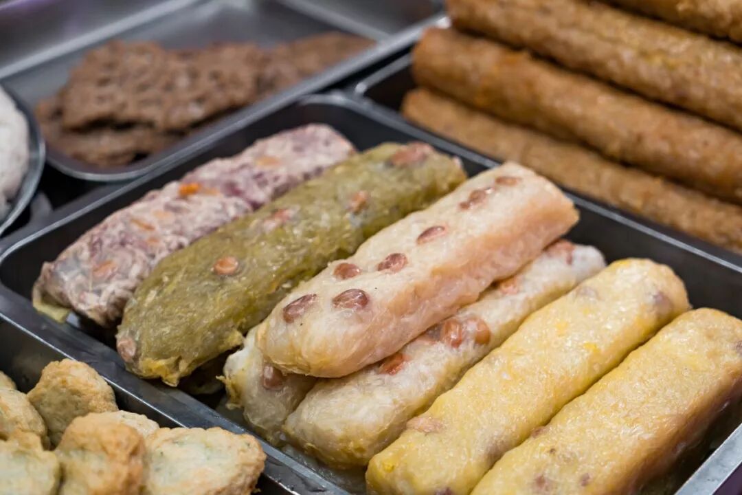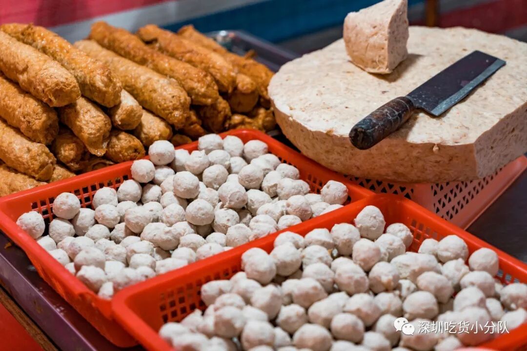 市场里有好几家卖丸子的,好些都是自己做的,去的巧还能买到热乎乎刚炸出来的鱼丸。又或是鱼面,你试过吗?潮汕的广章,芋头卷、菜头卷,也可以自己买回家切了炸了吃。