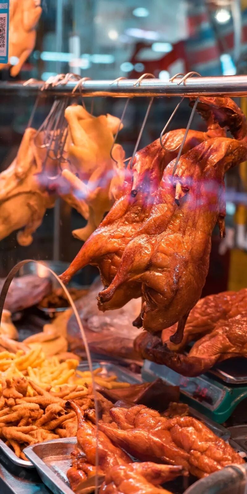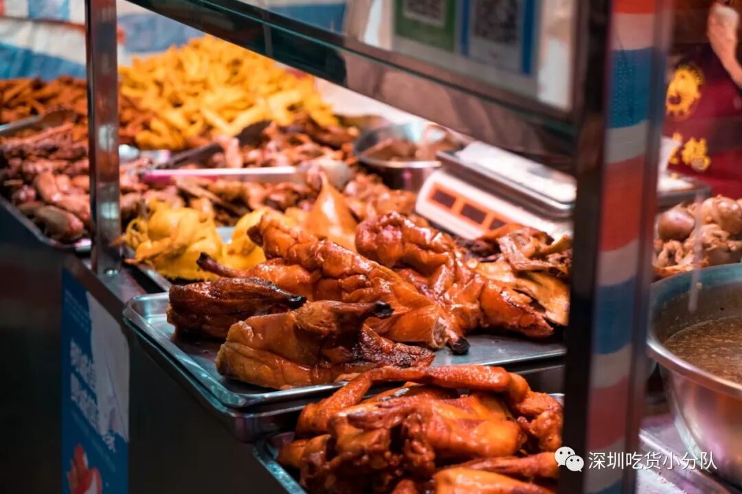有时候买菜会顺带捎上几份熟食,或是脆皮的烧鹅,或者入味的猪蹄、大肠。