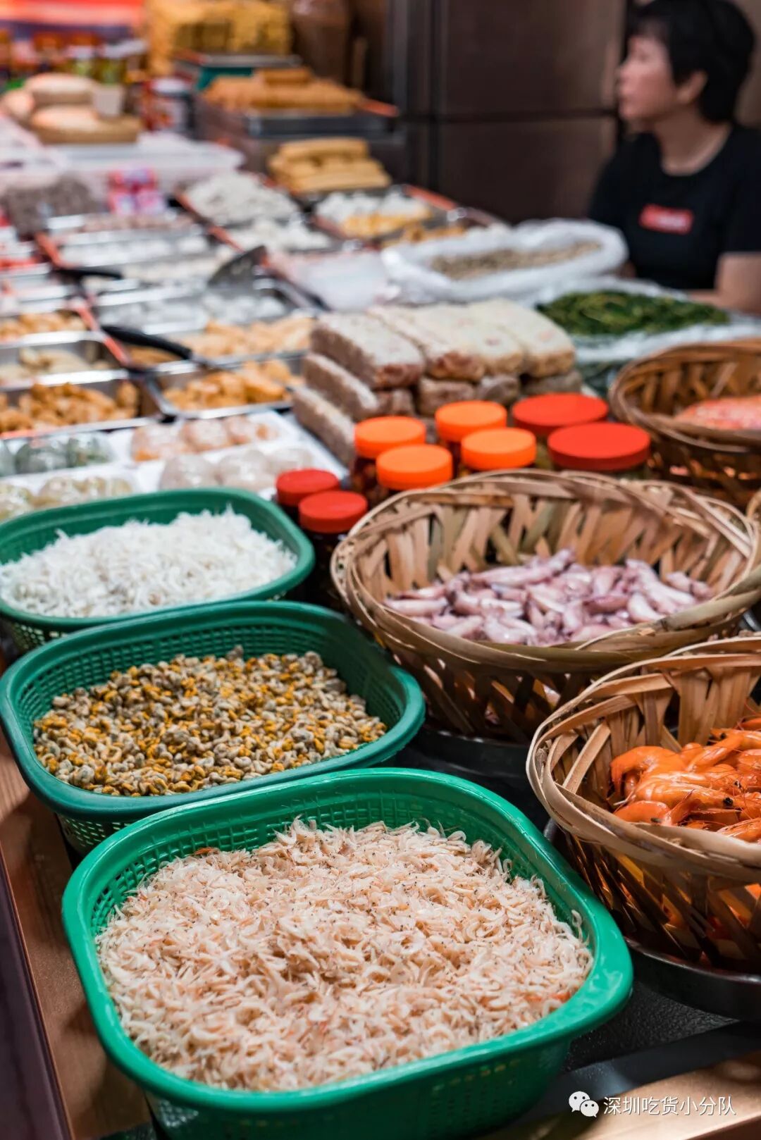 这里的鱼饭用小篮子码得整整齐齐,红鱼、巴浪鱼、吊桶仔、薄壳米。而一旁还有潮汕的粉粿,南瓜粿、芋头粿、韭菜粿......