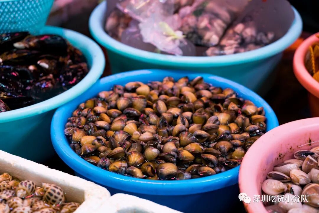 这里有扇贝、海螺、青口、花甲,但这都不是重点,看到了蚬和薄壳,我妈肯定是挪不开脚了,要上一斤两斤,再搭上一根金不换,回家一炒,就轮到我爸就吃得挪不开脚。