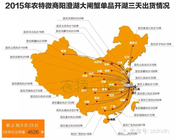 2015年大闸蟹电商的运用模式全面变了:微商带来巨大的订单过去几年的大闸蟹生鲜电商,主要是以B2C和B2B2C电商、淘宝及天猫平台。这样的平台产生的订单是流量导向的方式,一个个的常规订单驱动,顺丰是能够支撑的。2015年的阳澄湖大闸蟹订单来的非常猛,从9月20日开湖以来,每天的顺丰接单量超过了1万单,导致了顺丰路由的瘫痪,导致这个现状的原因是今年的模式和过去几年完全不一样了。微商的爆发,预售带来集中暴涨的订单。2015年农特微商这样的新模式的爆发,全部走的是预售模式。不仅仅是农特微商对接的养殖基地,其他阳澄湖的基地也全面推向微商运营。农特微商在阳澄湖9月8日就举行了走进基地体验活动,利用社交电商的思维全面启动,不仅仅走进产区体验,而且进行了场运营的操盘培训活动,数百位来自全国的运营操盘手集中推动,这导致每天数千个农特微商的订单在9月20日后集中爆发。中秋假期时间约束,5天时间约束让物流全面瘫痪。大闸蟹无形中已经成为了中秋节过节送礼的一个重要单品,阳澄湖开湖是9月20日,中秋节是9月27日,开湖捕捞到27日之前,仅仅只有5天的时间。第一波的订单,大部分都是中秋送礼的订单,要处理大量的中秋订单,这是瘫痪的重要原因,根本没有弹性的时间。但对于用户来说,送的是大闸蟹,背后传达的是友情、客户关系、商业合作等,所以这让所有订单处理面临巨大的压力。如果大家还有印象,可以看看2011年双11爆炸的订单,到11月15日各大快递路由还在处与瘫痪状态。